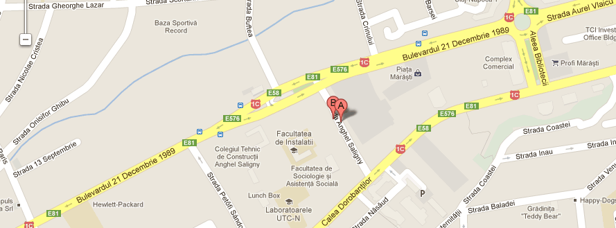 Ne găsiti în Cluj-Napoca, Strada Anghel Saligny, Nr. 2, parter. (Între Piața Mărasti și Turnul BRD, 2 minute de mers pe jos de stația de autobuz).